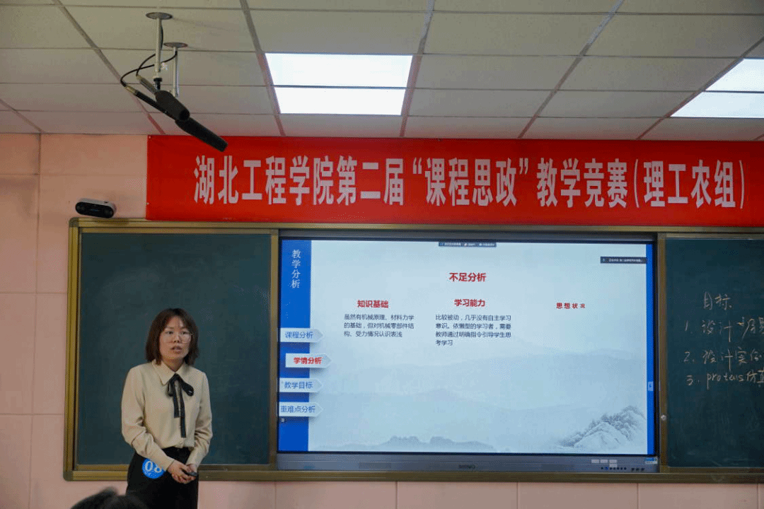 课程思政对塑造学生正确的世界观、人生观、价值观,培养担当民族复兴大任的时代新人、培养德智体美劳全面发展的社会主义建设者和接班人具有重要意义。在本次课程思政教学竞赛的舞台上,我校参赛教师用扎实的专业基础、丰富充实的育人元素、生动流畅的教学语言、灵活多样的教学方法,展示了湖工教师的实力和风采!