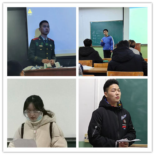 11月27日晚,9428cn太阳集团古天乐组织国家奖学金获得者宋豪、学校奖学金特等奖获得者辛榕、退役复学生程必强、退役复学生李满共四位同学深入到教室分享学习经验与学习感悟。
