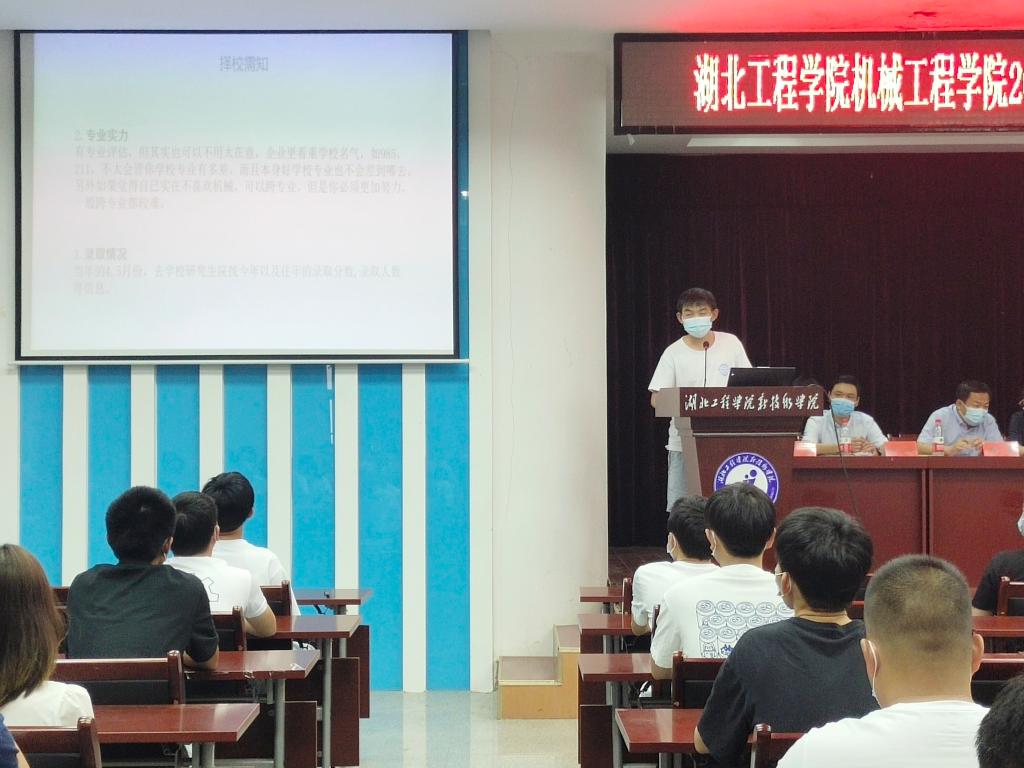 优秀校友代表曹向阳对声音的声字,颜色的色字及时事进行解读,希望同学们对生活充满自信,对学术要有探究欲望,做一个有声有色之人。优秀校友代表李博对湖北华中长江光电有限公司进行介绍,为正在找工作的同学找到一条大路。毕业生代表宋豪同学给学弟学妹们分享学习心得,为准备考研的同学解决考研过程中可能遇到的各种问题。毕业生代表程必强同学为同学们分享回乡创新创业,带动乡民踏上致富之路。毕业生代表徐敏为准备找工作的同学分享了各种实习建议,给同学们传授了许多宝贵经验。毕业生代表李子睿分享他在大学里从学科竞赛所获得的经验,提高了同学对学科竞赛的兴趣,拓宽学生的视野,培养学科特长。