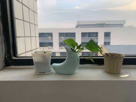 窗台的小盆栽让人眼前一亮,学习之余也要注意放松、看看窗外,看看绿色,休息休息哦……