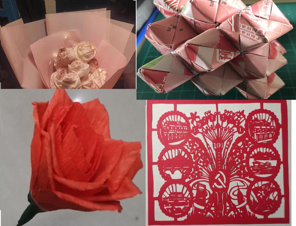 本次活动采取线上投稿线上展示的方式,参赛选手的作品选用生活中常见的纸为材料来制作,体现了环保的理念。参赛作品外观精美,做工细腻,创意独到,很好的诠释了本次活动的主题,提高了参赛学生的发散思维和动手实践能力。经过评委们的认真公正的评选,0203016143班孙姿姿同学的作品《手捧花》获得了本次比赛的冠军。
