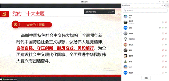 最后学院党委书记盛继群同志对学习贯彻党的二十大精神提出要求。一是要把学习宣传贯彻党的二十大精神作为重大政治任务,学深悟透,在全面学习、全面把握、全面落实上下功夫,切实将思想和行动统一到党的二十大精神上来;二是坚持不懈用习近平新时代中国特色社会主义思想凝心铸魂、把党的最新理论成果转化为指导实践、推动工作的强大动力,真正做到知信行统一;三是要立足本职岗位,坚持守正创新,强化担当使命,在推动9428cn太阳集团古天乐和学校高质量发展中做出应有的贡献;四是要坚定不移贯彻全面从严治党各项部署,特殊时期,从严自我要求,推动作风建设走深走实。