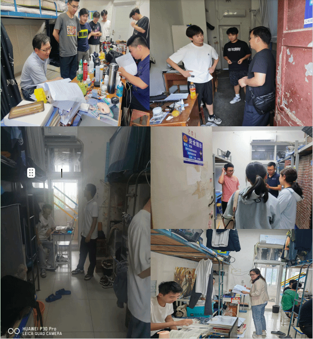 访谈中,学院领导、班主任和辅导员还对学生进行了安全教育。同时对宿舍生活设施、清洁卫生、用电安全等方面进行了检查,提醒学生要增强安全防范意识,宿舍保持通风,加强疾病预防,营造积极健康的宿舍文化。