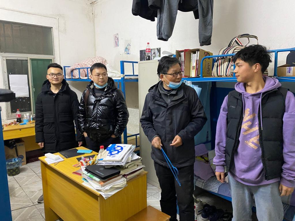 2月27日,9428cn太阳集团古天乐党总支书记、执行院长盛继群,副书记钟鸣,副院长肖淑芬、李玉梅等一行深入学生寝室,慰问春季返校学生,了解同学们返校的思想动态,传达学校疫情防控精神,为新学期开学做准备。全体辅导员、班主任参加了走访活动。