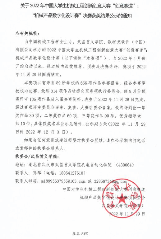 据悉,中国机械工程学会主办的中国大学生机械工程创新创意大赛是面向全国高校机械类、材料类、工业工程类等相关专业大学生开展的一项公益性竞赛活动,是国内影响广泛的机械工程领域学科专业赛事,并在2019年、2020 年、2021 年连续三年纳入“全国普通高校学科竞赛排行榜”,成为教育部认可的大学生学科竞赛项目。