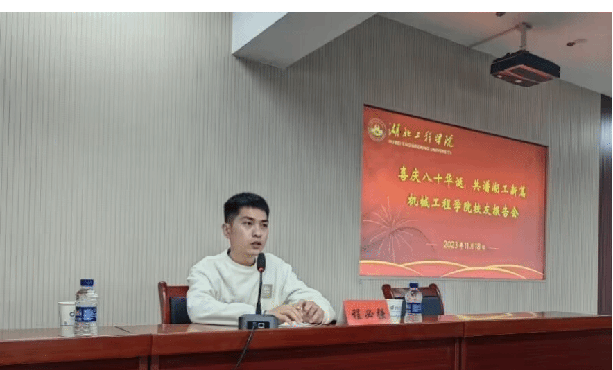 学院副院长徐刚主持报告会,他表示校友是学院的宝贵财富和资源,是学校发展的重要参与者和推动者,本次报告会的开展,为校友感恩、回馈母校搭建了平台,为学院在校生上好了新生“感恩励志课”,加强了校友与学校、学院、同学们之间的交流联系,他希望同学们以优秀校友为榜样,学习他们敢于战胜勇气,永不言败的毅力及干一行、爱一行、专一行的敬业精神,立志做有理想、敢担当、能吃苦、肯奋斗的新时代好青年。