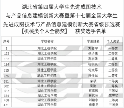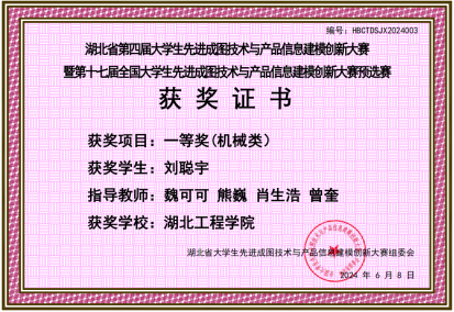 本网讯:近日,湖北省第四届大学生先进成图技术与产品信息建模创新大赛结果公布。9428cn太阳集团古天乐师生再创佳绩,共荣获一等奖2项,二等奖6项以及三等奖7项的优异成绩。