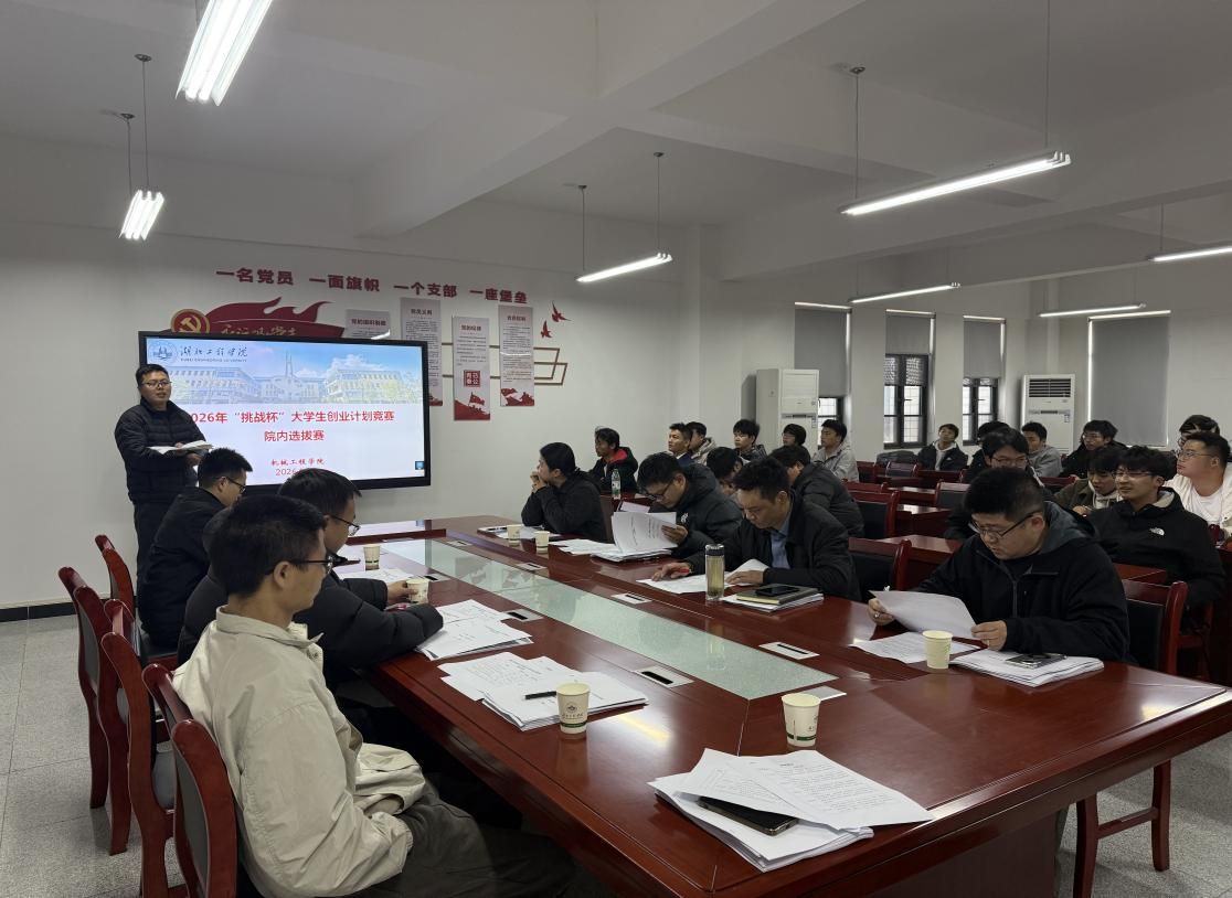 3月12日,9428cn太阳集团古天乐在机械楼413会议室举办2026年“挑战杯”全国大学生课外学术科技作品竞赛院内选拔赛,学院党委书记赵勇、党委副书记杨晓薇、副院长熊巍、院长助理肖生浩,各参赛队指导教师及全体辅导员参加活动。