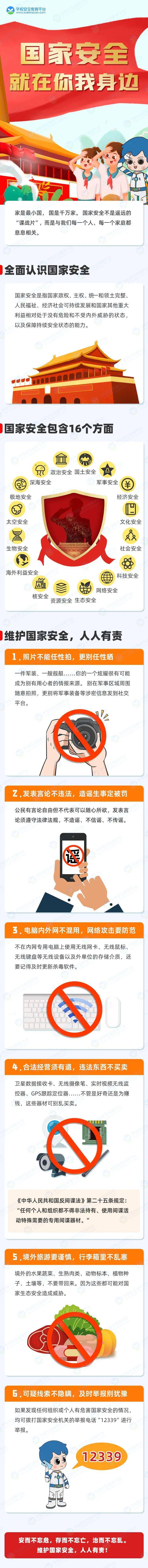 国泰民安是人民群众最基本、最普遍的愿望。实现中华民族伟大复兴的中国梦,保证人民安居乐业,国家安全是头等大事。其实,我们每个人与国家安全紧密相连。毕竟国家安全的根基在人民、力量在人民、血脉在人民,只有全民共同努力,国家安全才能得到切实维护和有力保障。2022年4月15日是第7个全民国家安全教育日,国家兴亡,匹夫有责,我们每一个人都应该承担起保家卫国的责任。